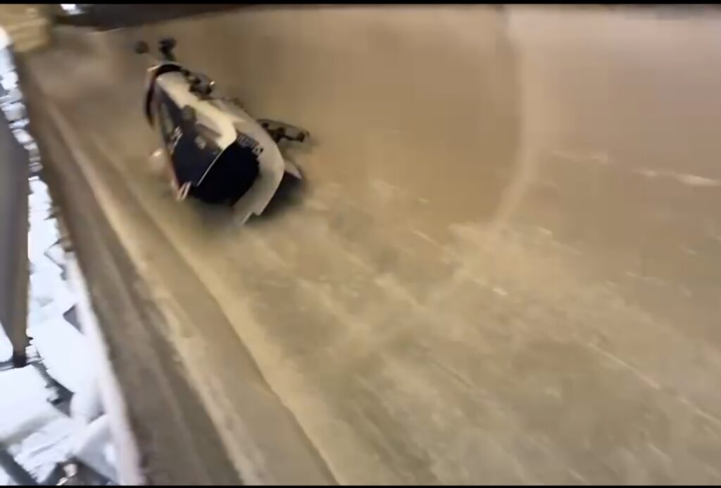 Mijn eerste crash in Altenberg was anders dan die in Winterberg. Daar was het plots, maar hier voelde het alsof de piloot een rare lijn nam. Hij raakte kantjes, en precies op het moment dat ik dacht: Dit gaat fout, gebeurde het ook. Het stuur bleek afgebroken…